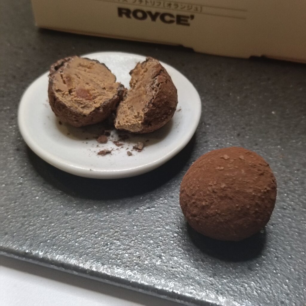 一口食べるとオレンジの香りが一気に口の中に広がり、ガナッシュはとてもなめらか